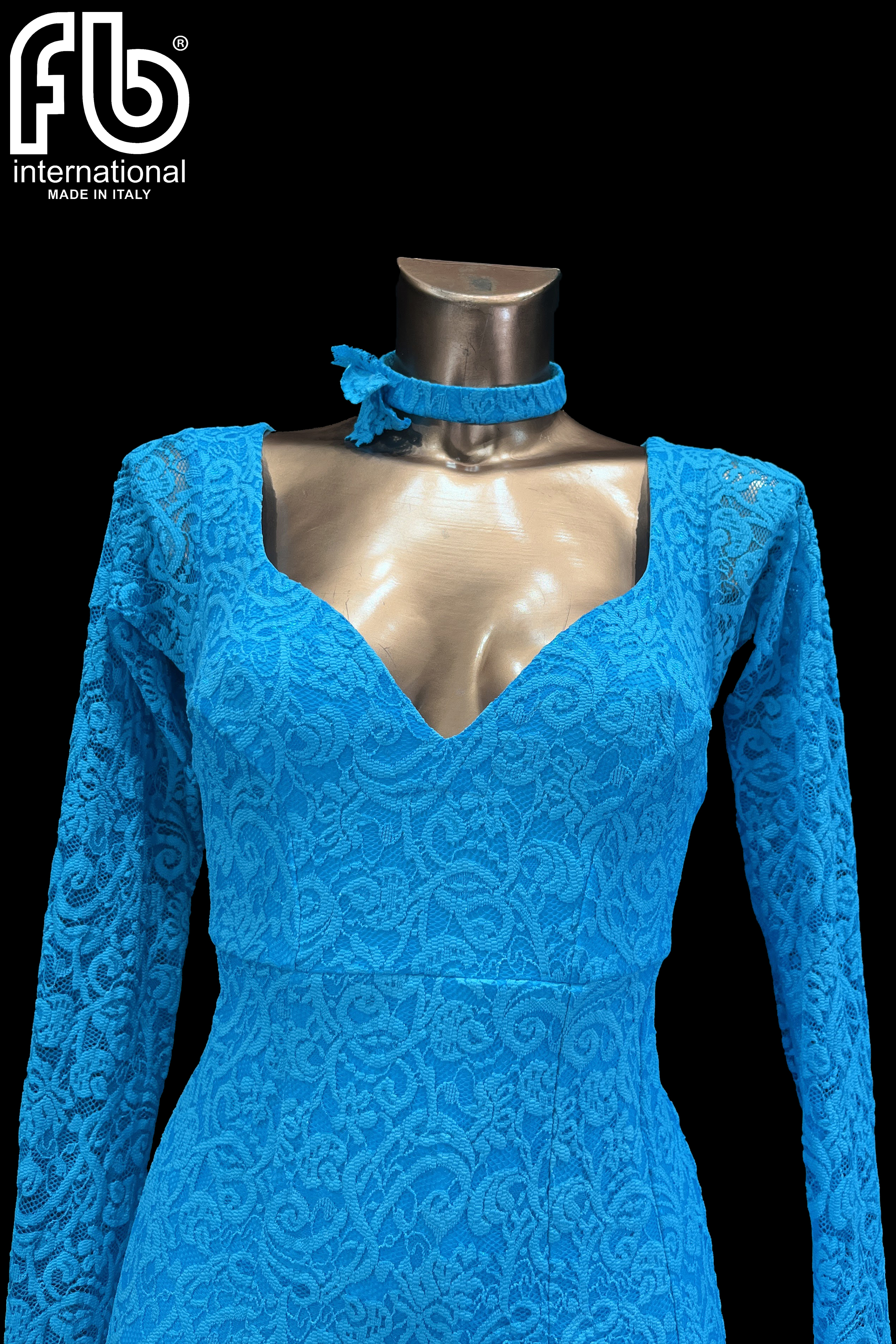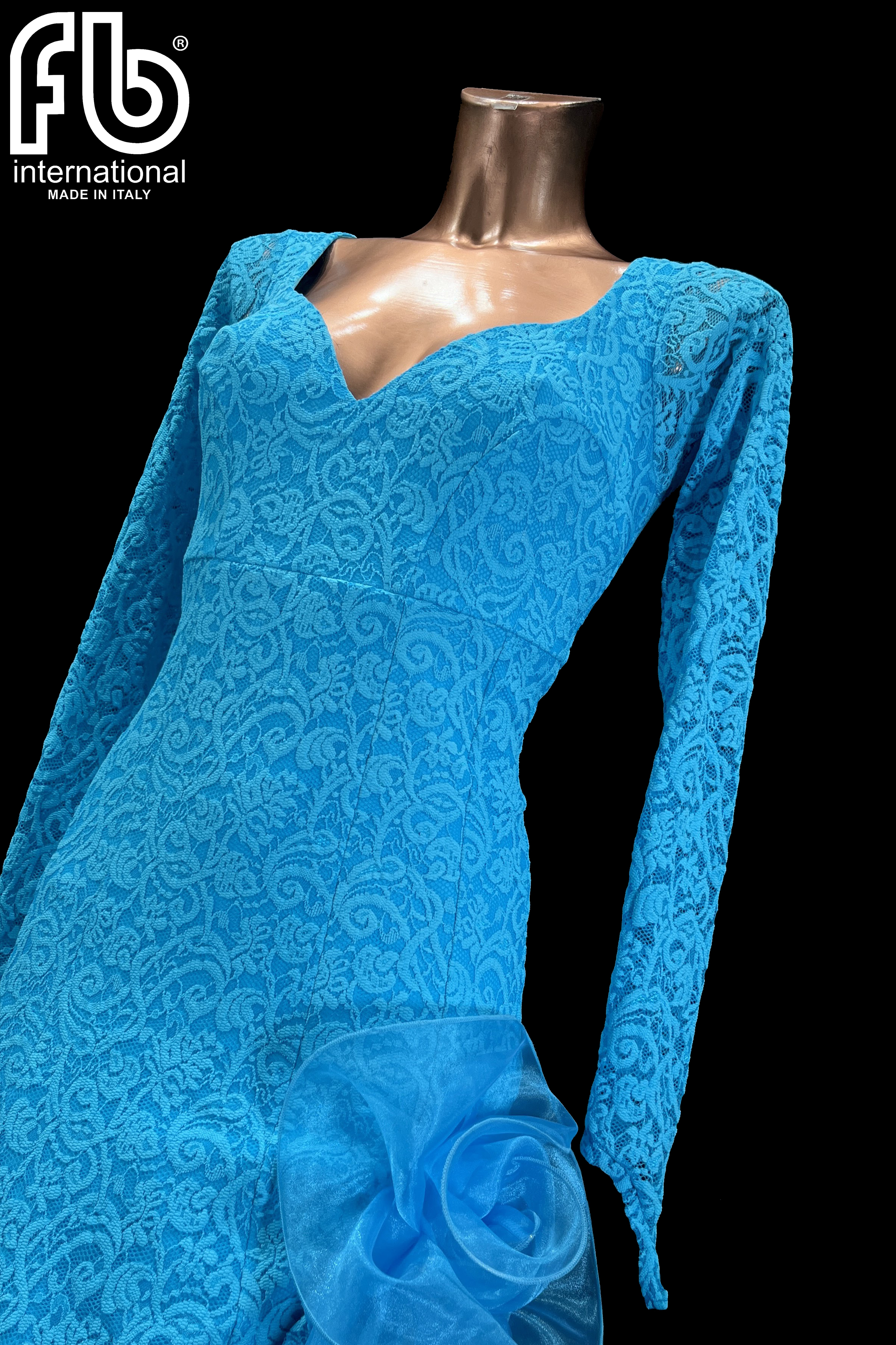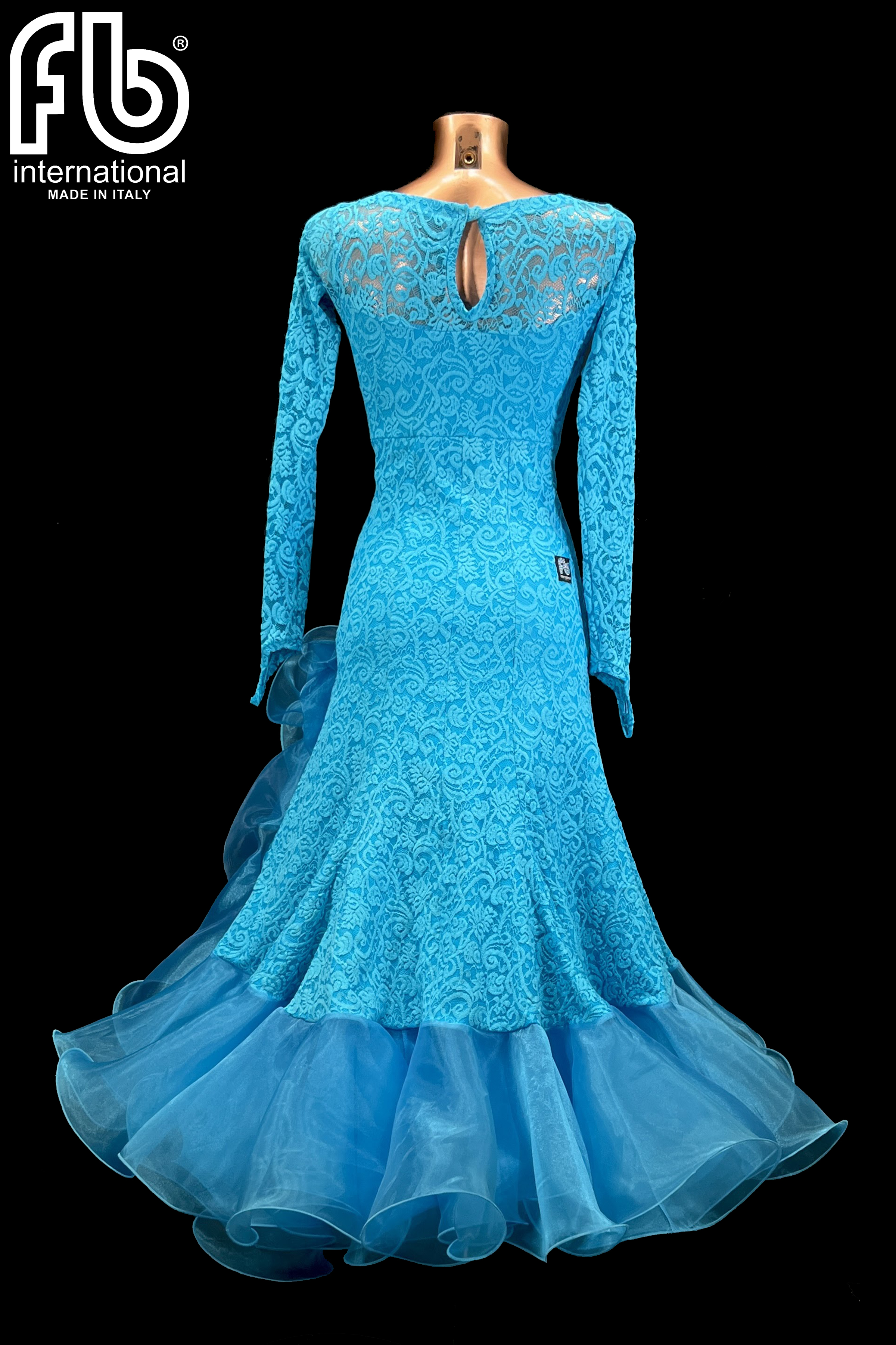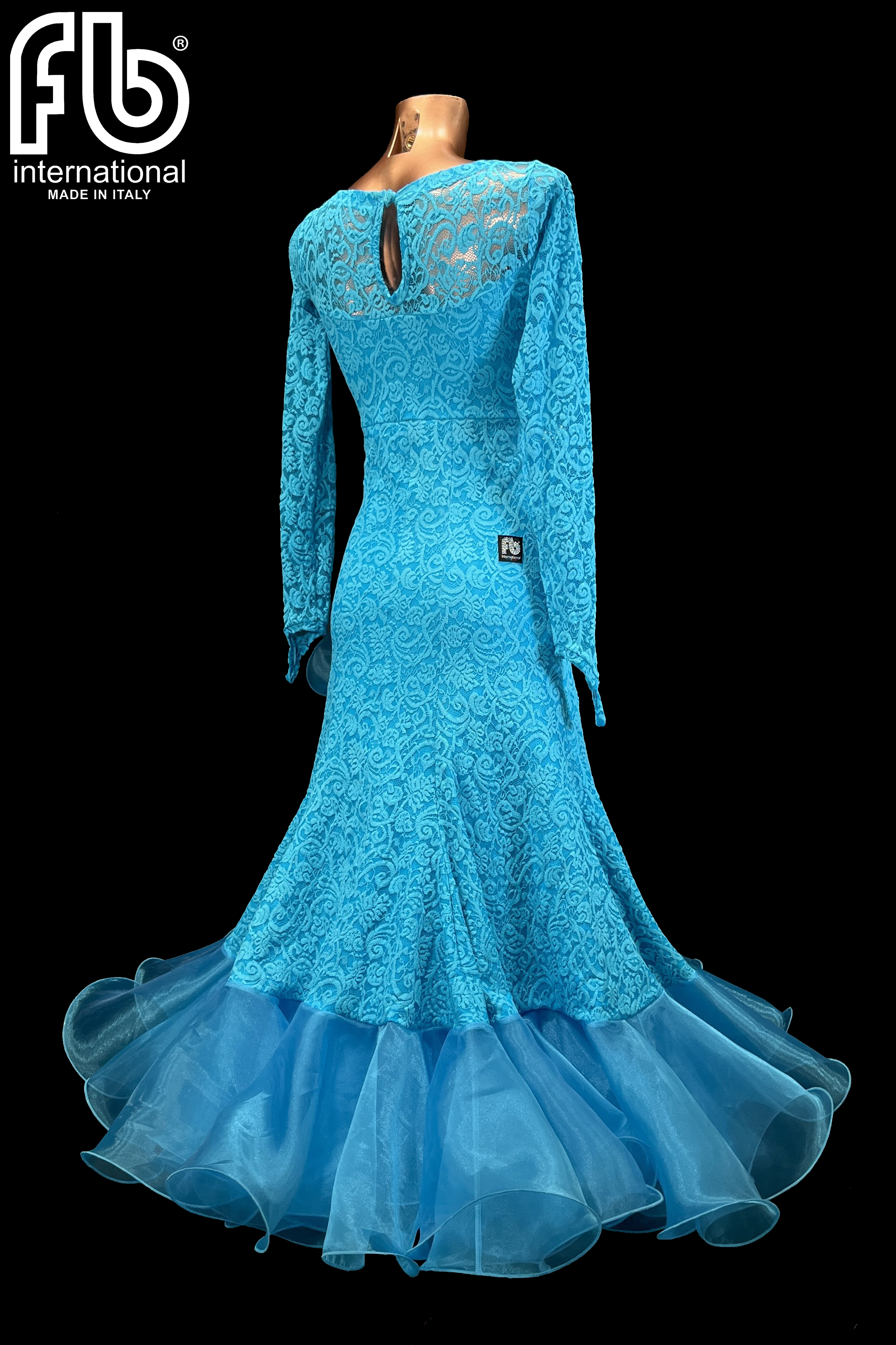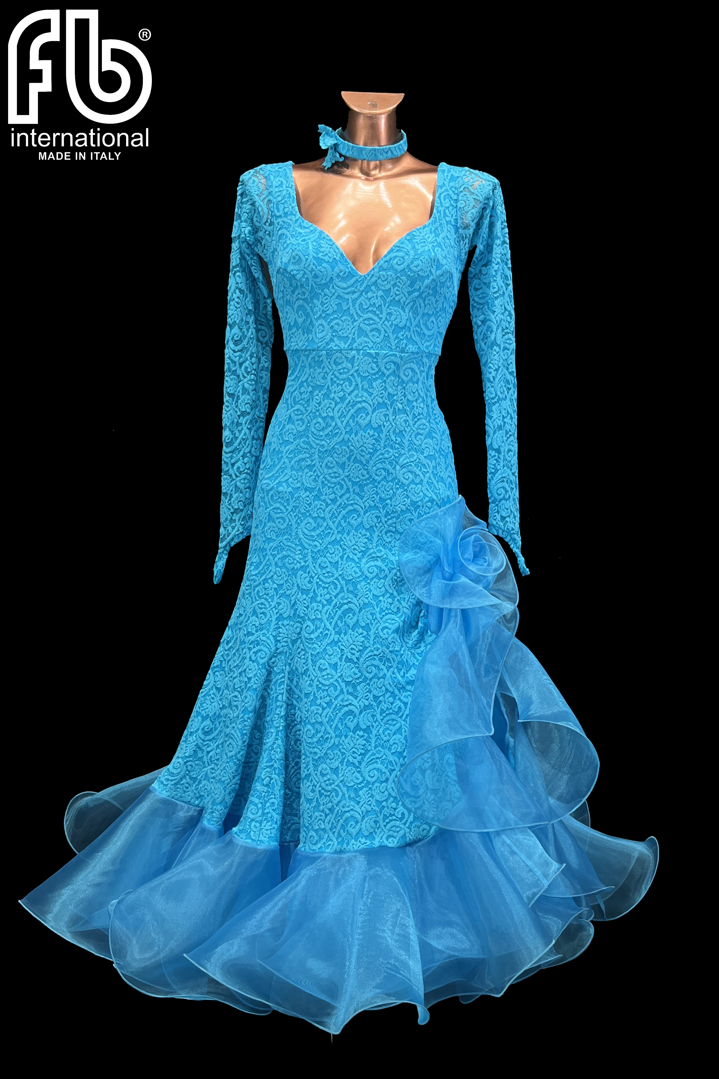 Standard/smooth dress made of high-quality stretch lace, with a wide organza skirt and organza underskirt that guarantees volume and visibility on the dance floor.