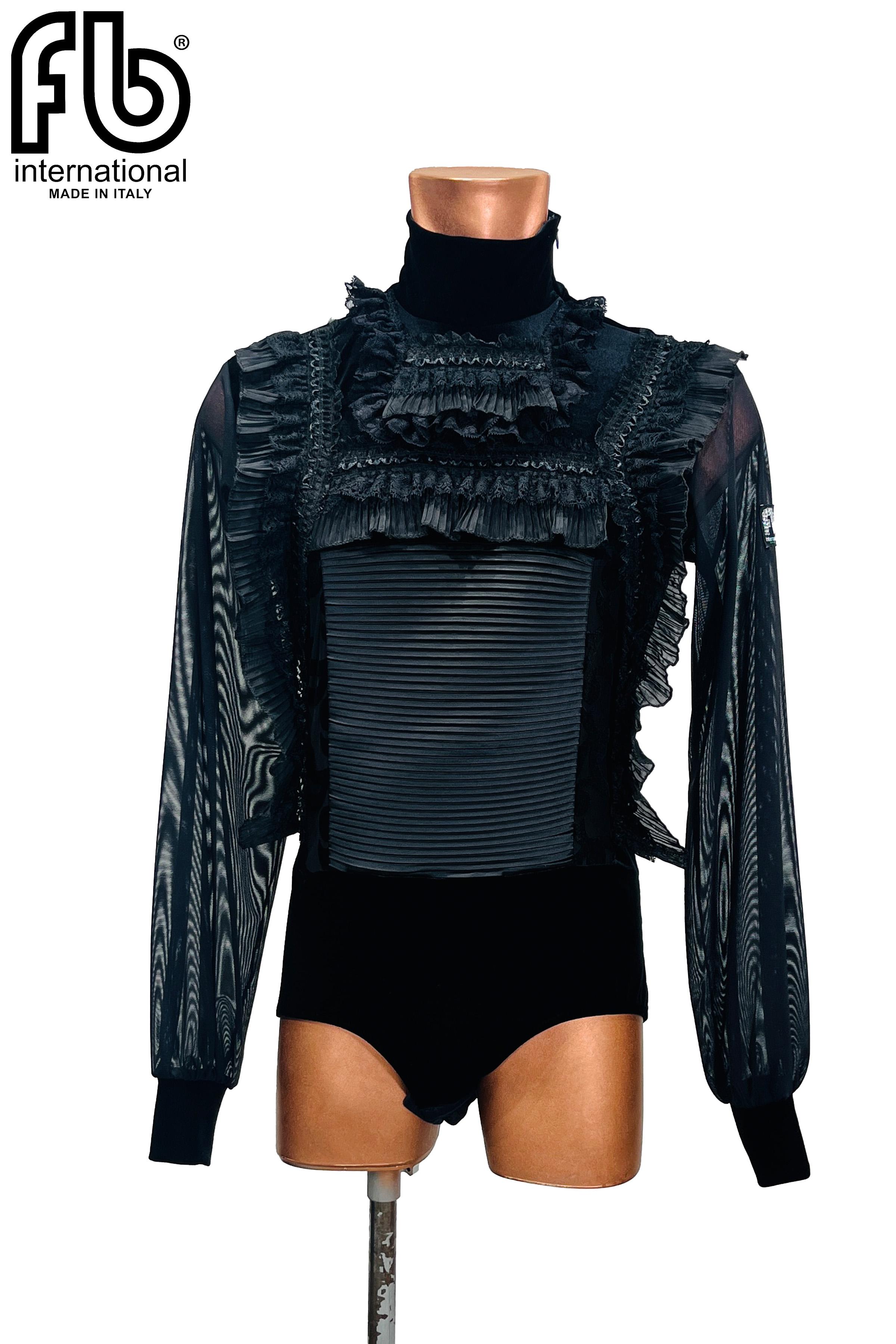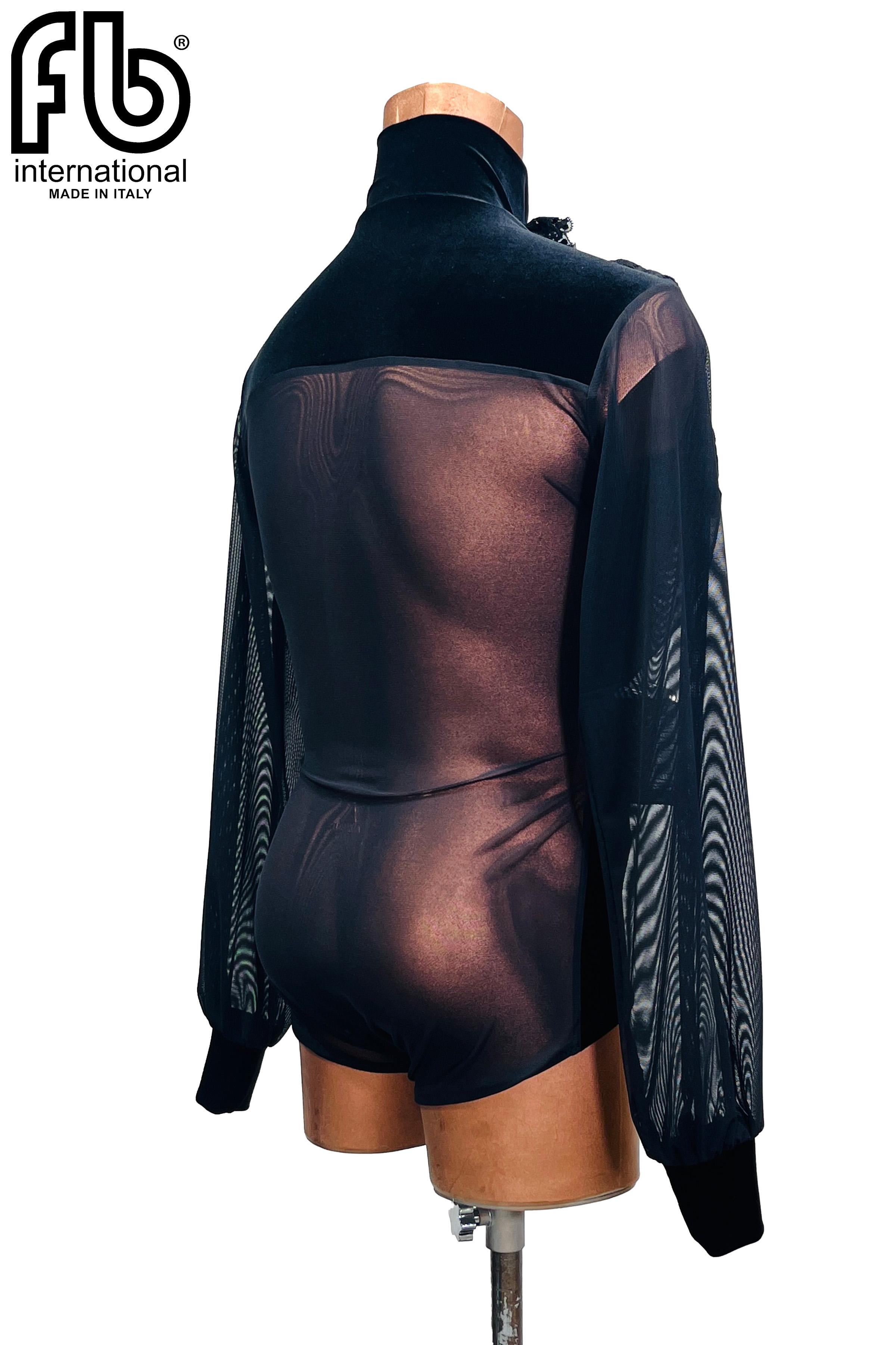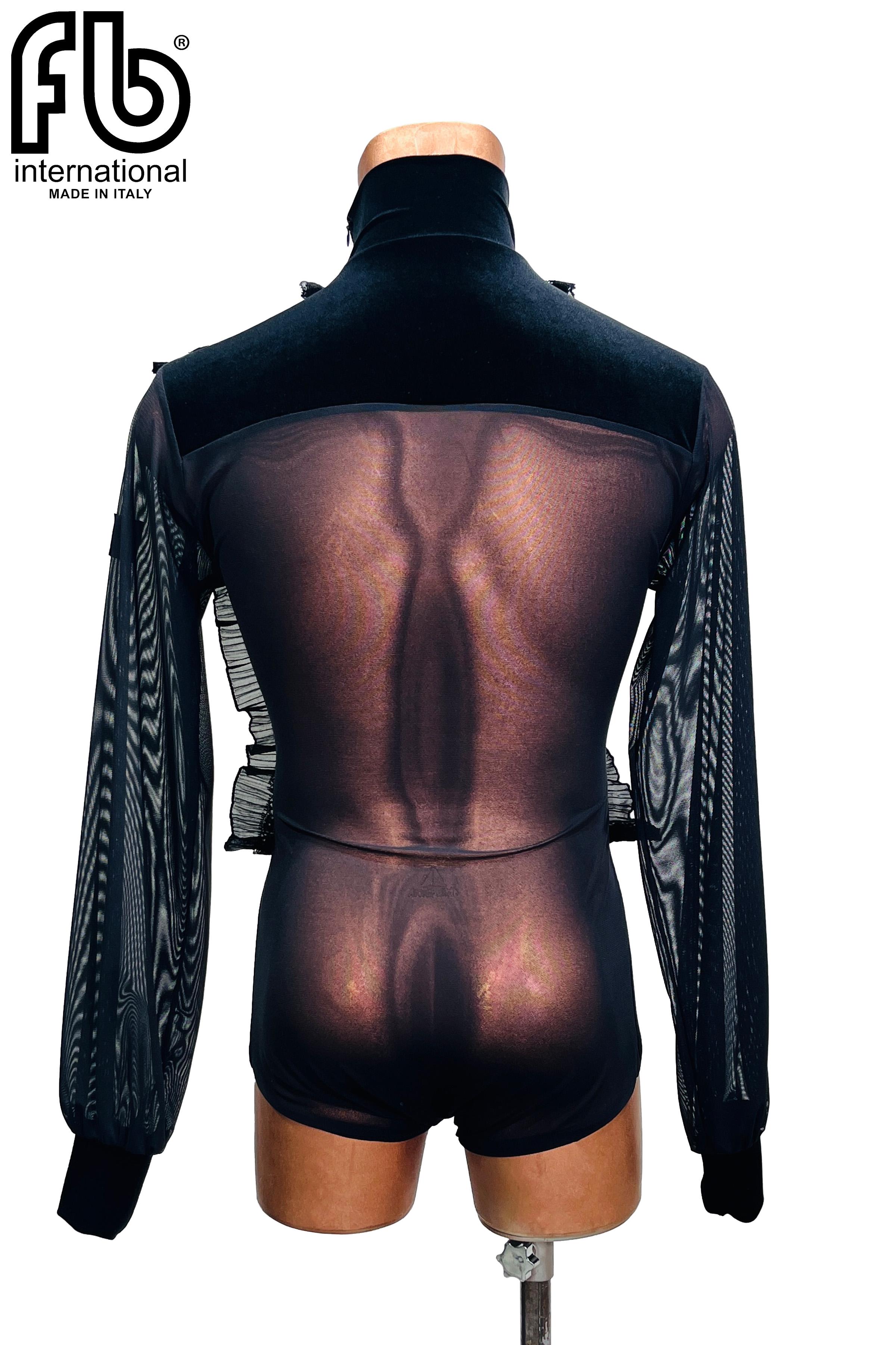 Camicia da uomo per danze latine realizzata in retina nera e raso con bottoni in raso, vestibilità stretta. TAGLIA: Questa camicia veste bene una M/L, controlla la vestibilità secondo le seguenti misure.