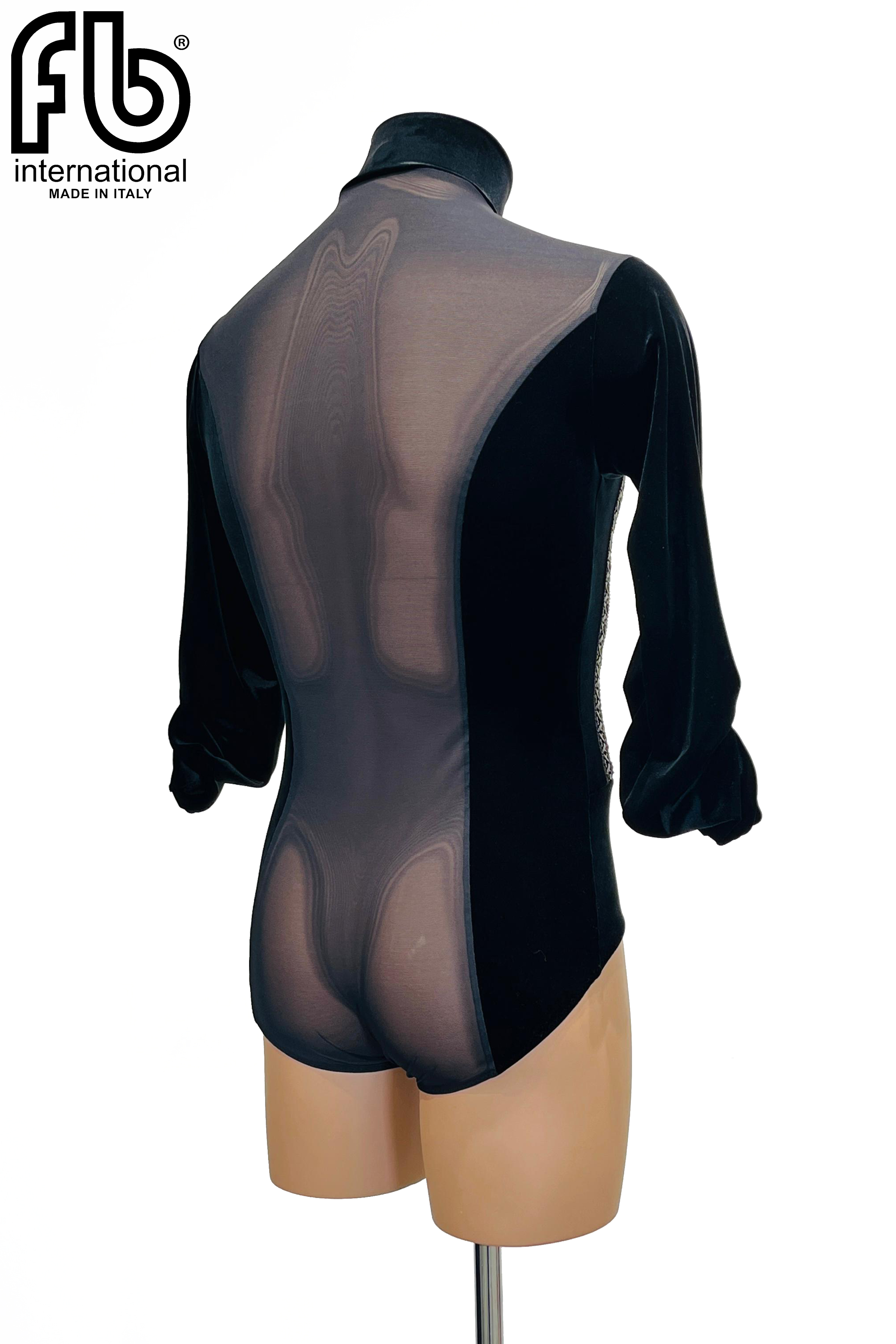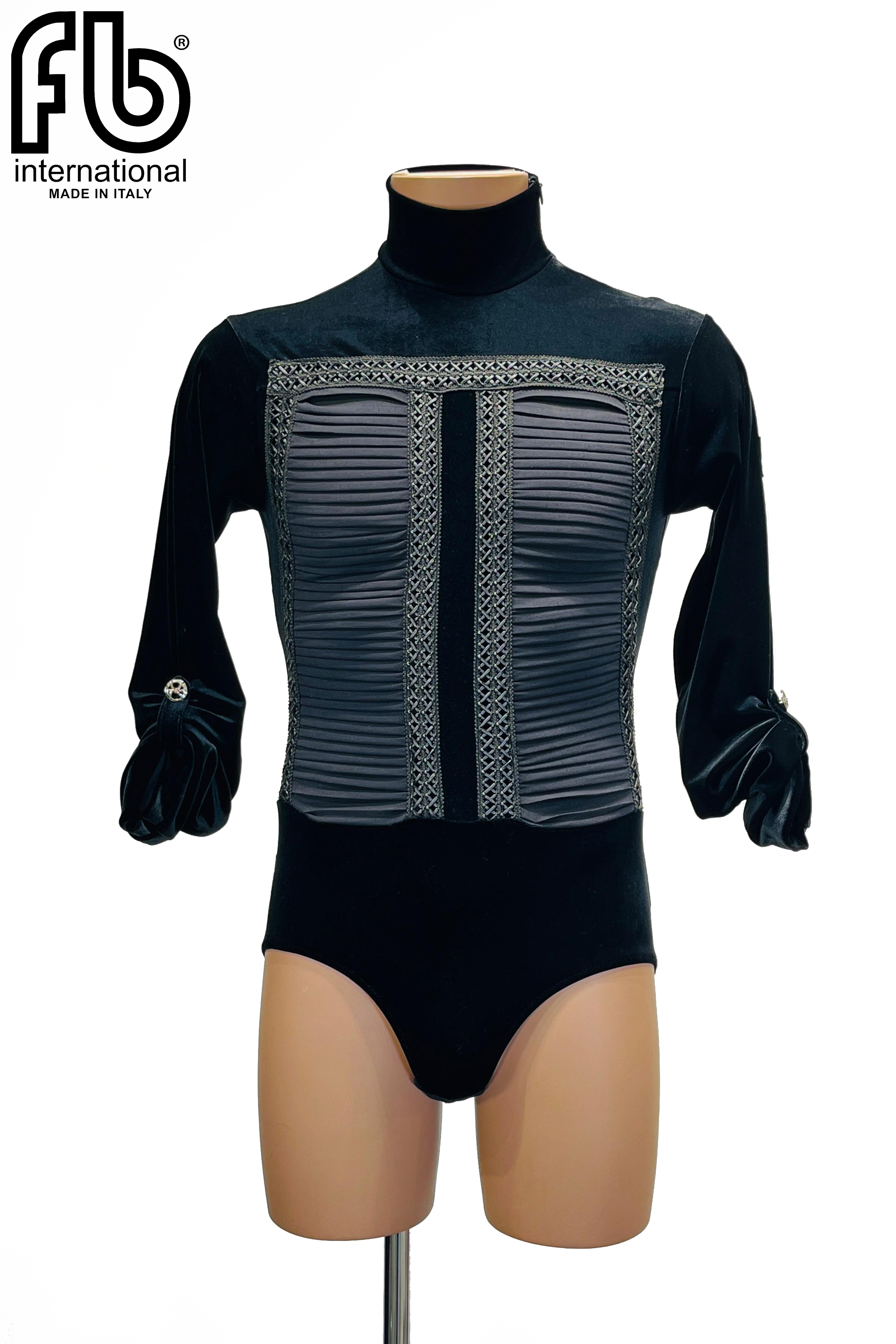 Men's turtleneck for Latin dances made of velvet with pleating on the chest and 3/4 length sleeve.