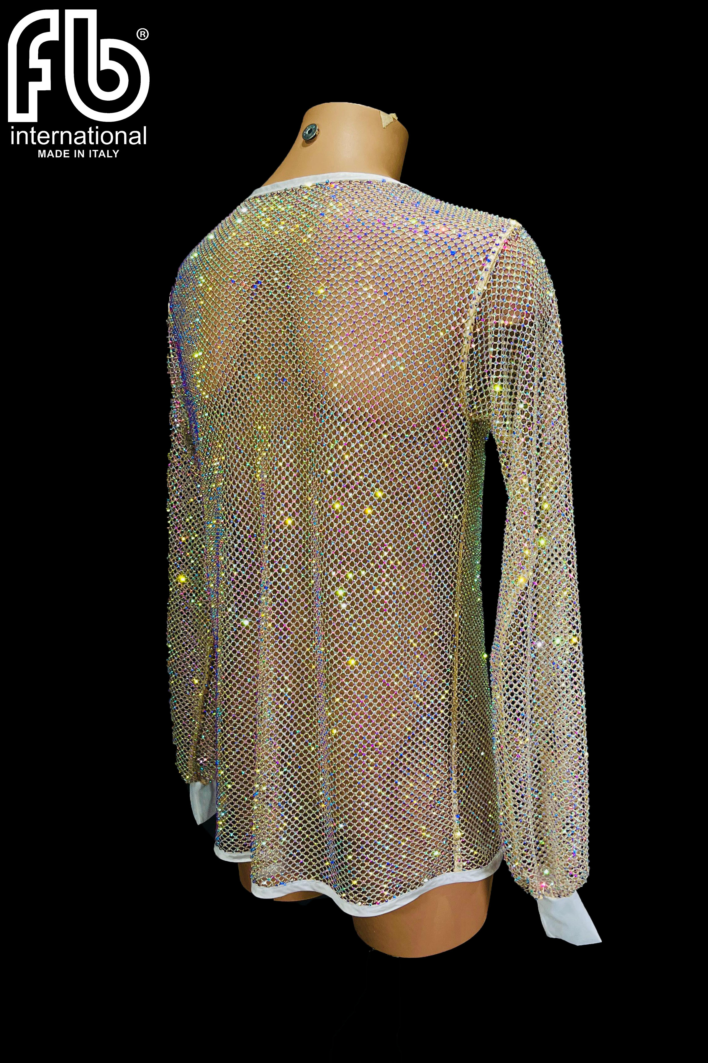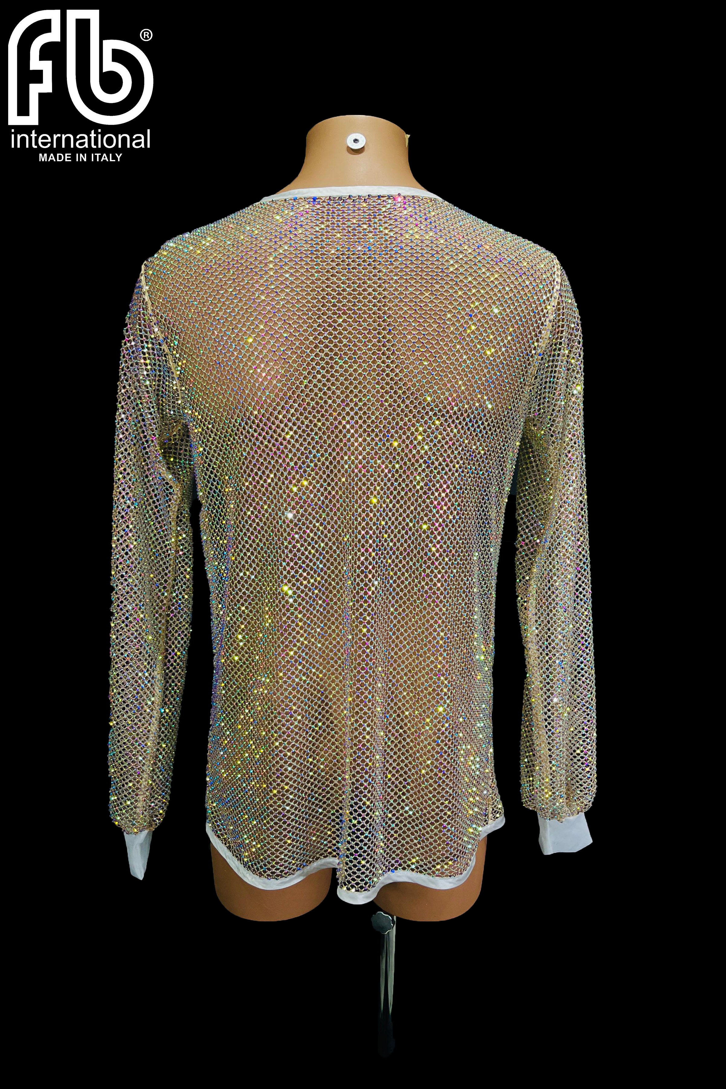Men's shirt for latin dance made of rhinestone net with AB.