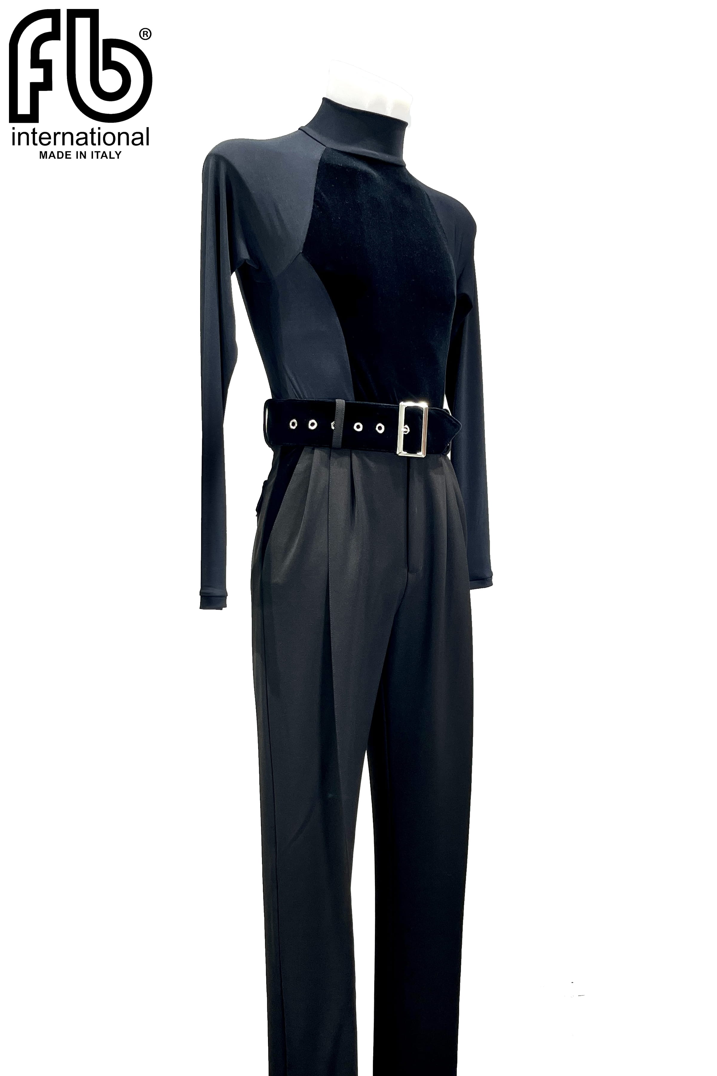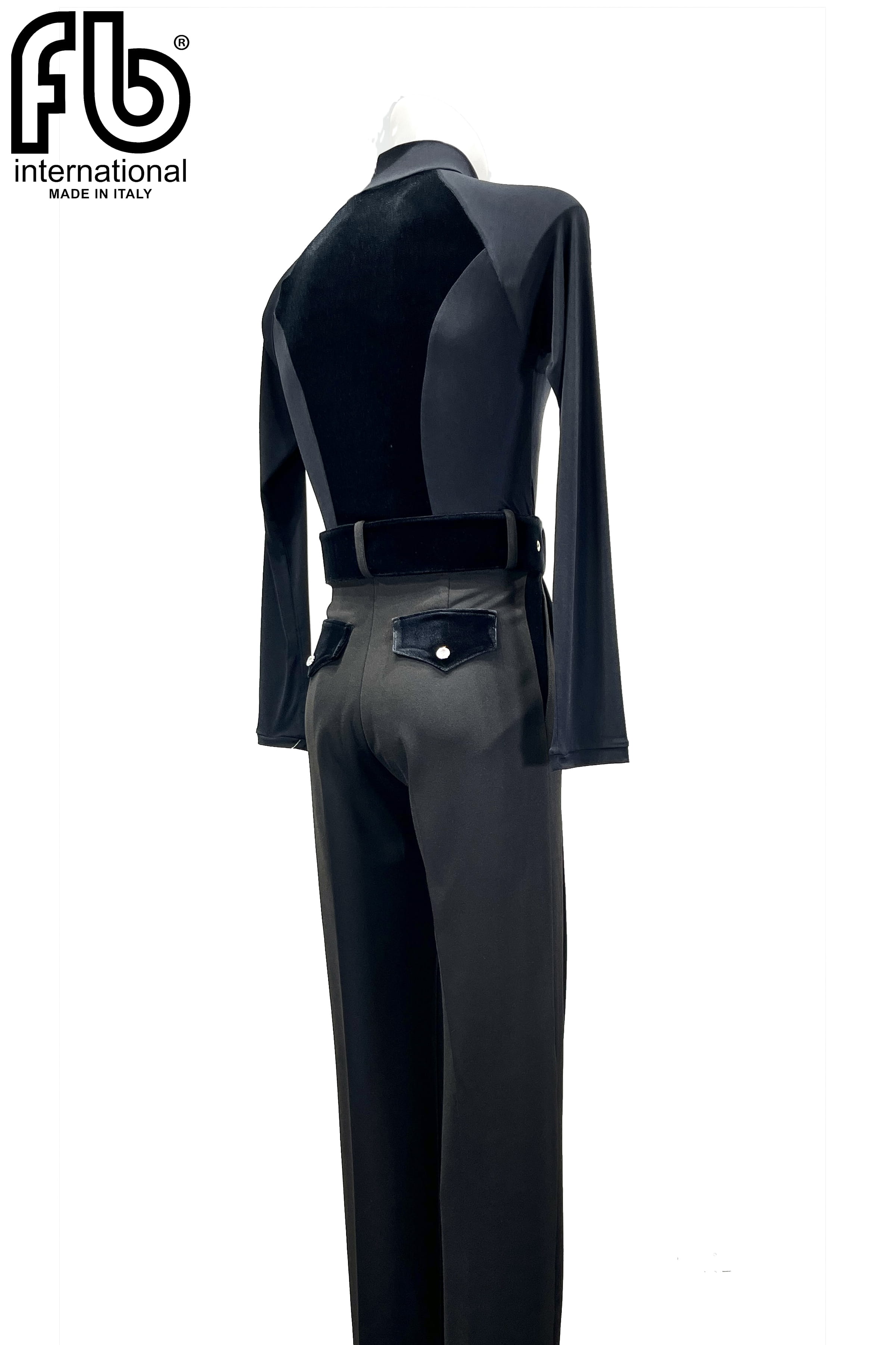 La comodità di un pantalone da allenamento, ma con l'eleganza di un pantalone da competizione. Realizzato in tessuto tecnico leggermente elasticizzato, 3 pences che amplificano il movimento dei fianchi, passanti e cinta, ottima vestibilità e aderenza al corpo garantite dall'allacciatura con ganci di metallo cuciti a mano e da una doppia pattina interna che avvolge perfettamente in vita. Pantalone Titanium luxury vellluto, è caratterizzato da cintura, interno tasche e taschini posteriori in velluto.